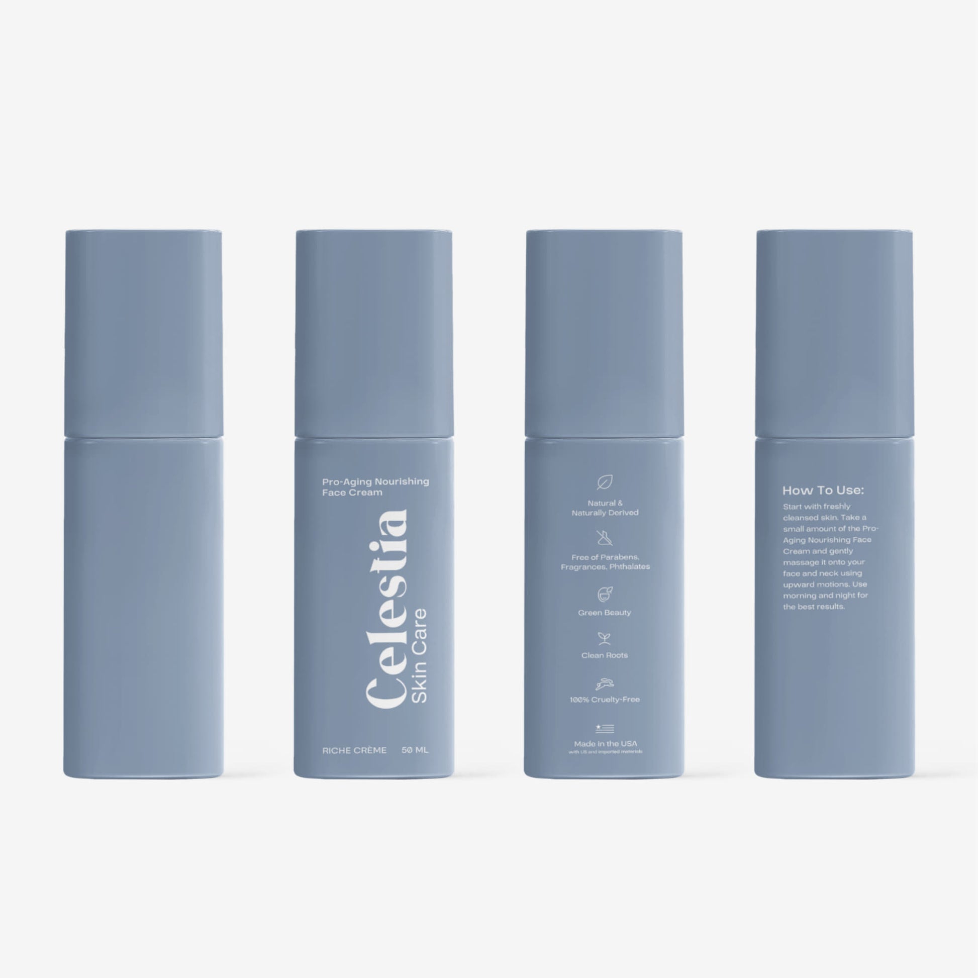 Start with freshly cleansed skin. Take a small amount of the Pro-Aging Nourishing Face Cream and gently massage it onto your face and neck using upward motions. Use morning and night for the best results.