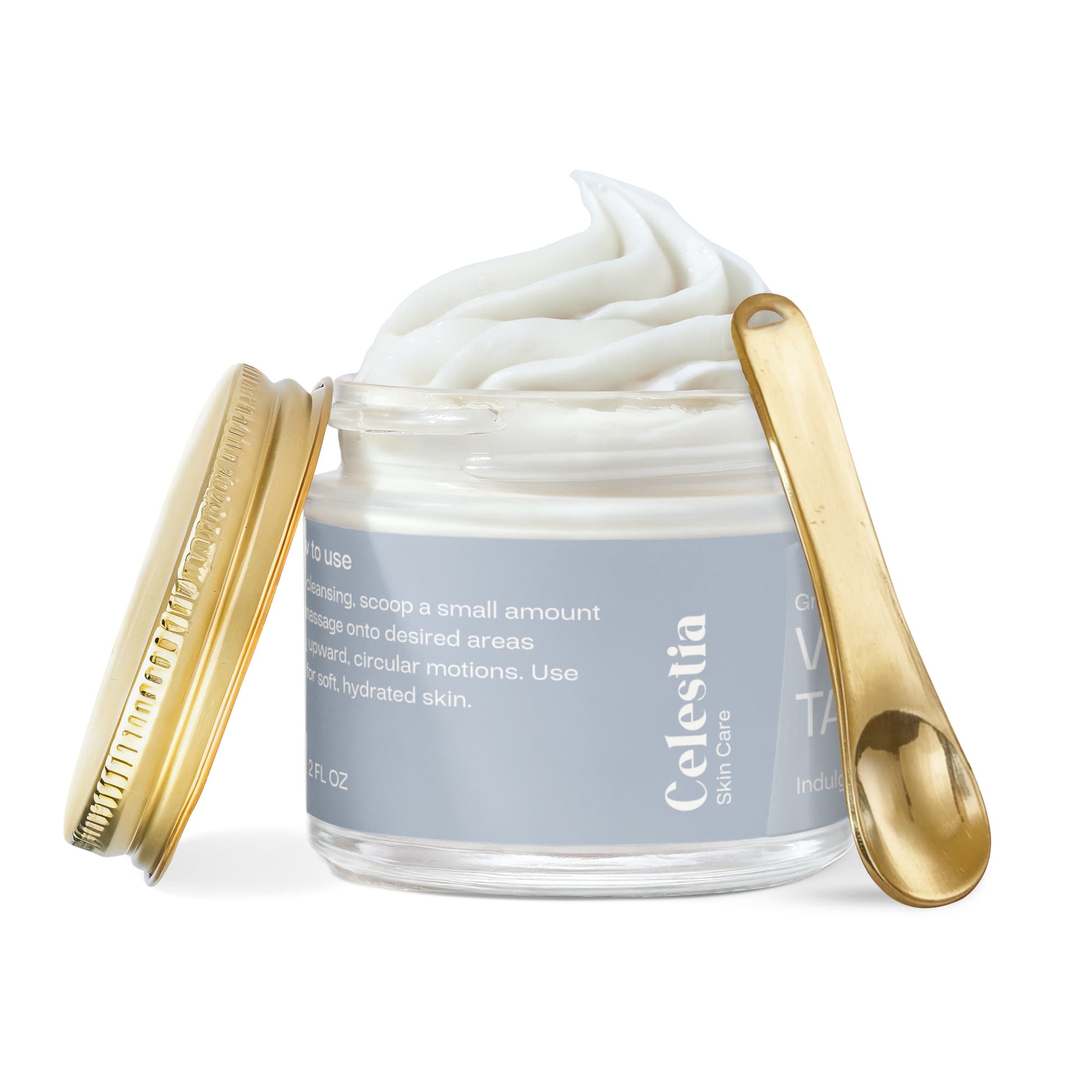 After cleansing, scoop a small amount and massage onto desired areas using upward, circular motions. Use daily for soft, hydrated skin.